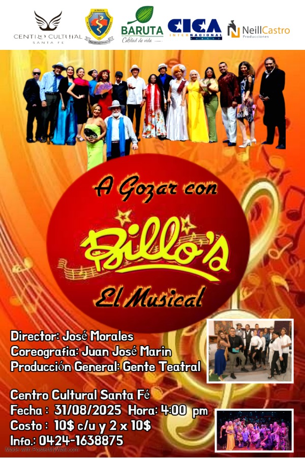 Aquiles Nazoa decía: “Creo en el sortilegio de la música” Esta frase se materializa en el musical “A gozar con Billo’s”. La orquesta de Billo siempre supo cómo encantarnos, y este espectáculo logra capturar esa magia, esa capacidad de hacernos sonreír y de movernos al ritmo de la vida.