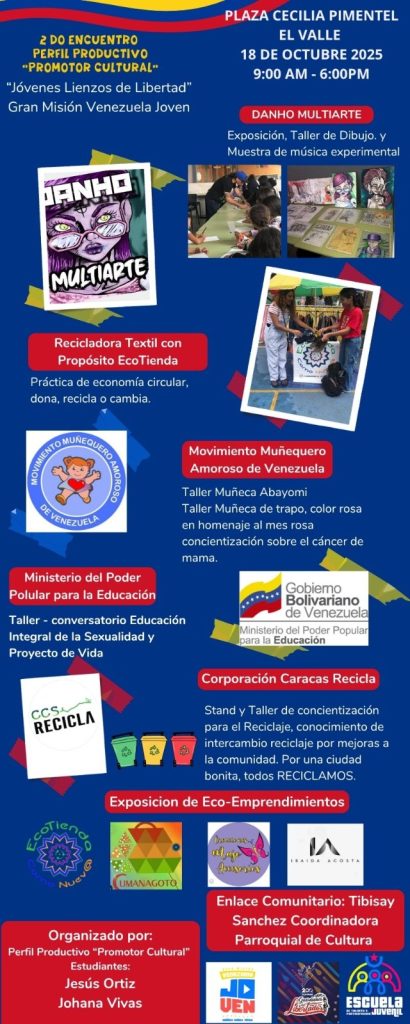 Este no es un evento cultural más. Es una plataforma donde la juventud se alza como protagonista, fusionando la expresión artística con la conciencia ecológica para gestar proyectos de eco-emprendimiento reales y sostenibles. Avalado por el INCES y con formación desde la sede de la Gran Misión Venezuela Joven, este encuentro es una prueba de que, como decía el gran Aquiles Nazoa, se debe creer en los poderes creadores del pueblo venezolano que convierten al amor y al arte como vías hacia el disfrute de la vida perdurable.