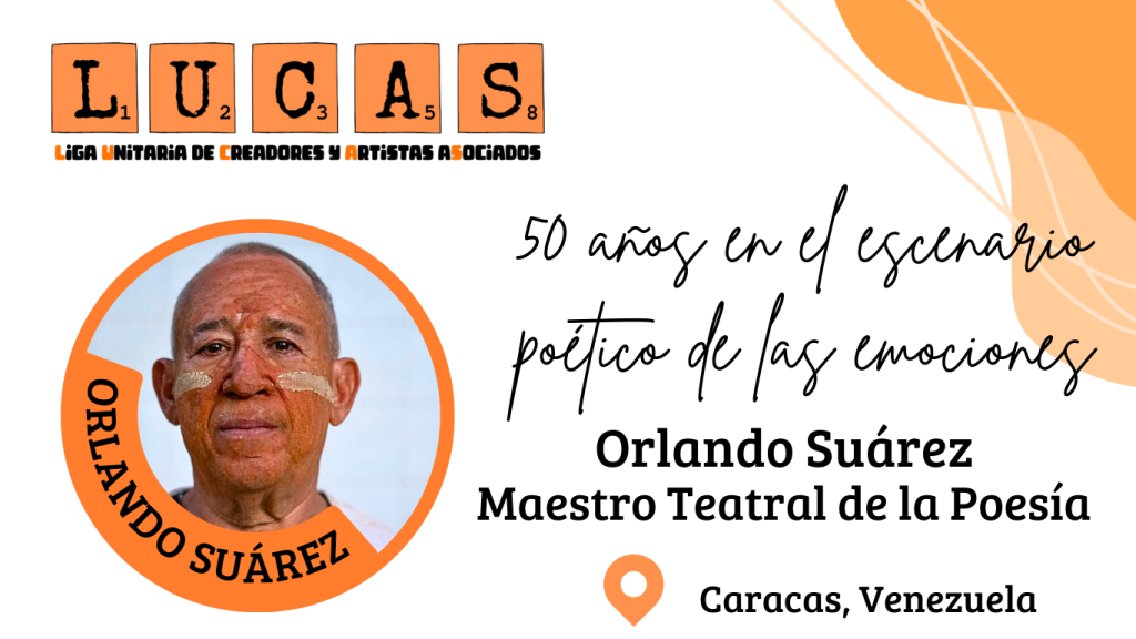 La Liga Unitaria de Creadores y Artistas Asociados (L.U.C.A.S.), como plataforma para el posicionamiento digital del arte y la cultura nacional, se enorgullece de presentar a uno de sus cultores referentes más valiosos: Orlando Suárez. Con una trayectoria apasionada de más de 50 años dedicados al teatro venezolano, Orlando es un creador, un maestro cuyo arte es una ventana honesta y cercana a la transformación social. A través de este perfil, conocerás su legado, su obra y podrás contactarle amablemente.