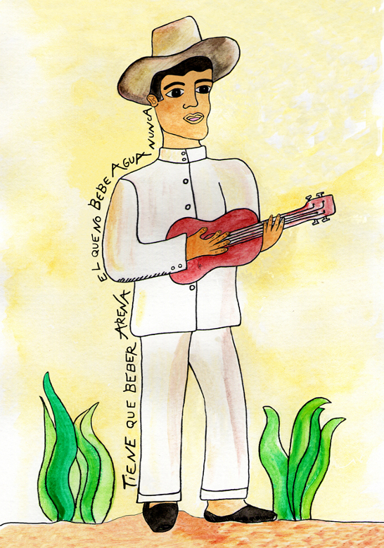 En «El Reto», el Maligno, vestido completamente de negro y con un «sombrero pelo’e guama», se cruza con Florentino y lo desafía a un contrapunteo. La atmósfera está cargada de presagio; el «cenizo anochecer» y las «escuálidas espinas» nos preparan para el inminente enfrentamiento. Este primer capítulo es el preámbulo, la calma tensa que antecede a la batalla.